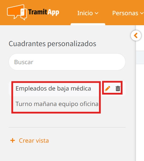 Todos los cuadrantes personalizados que tengas o que hayan compartido otros admins aparecerán en el apartado de la izquierda. Podrás pasar de uno a otro haciendo clic sobre ellos. Además podrás editar su configuración o eliminarlos: